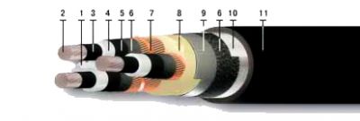 - Экран поверх изоляции каждой жилы – из электропроводящей сшитой композиции полиэтилена, сверху дополняется обмоткой из электропроводящей полимерной ленты или бумаги;